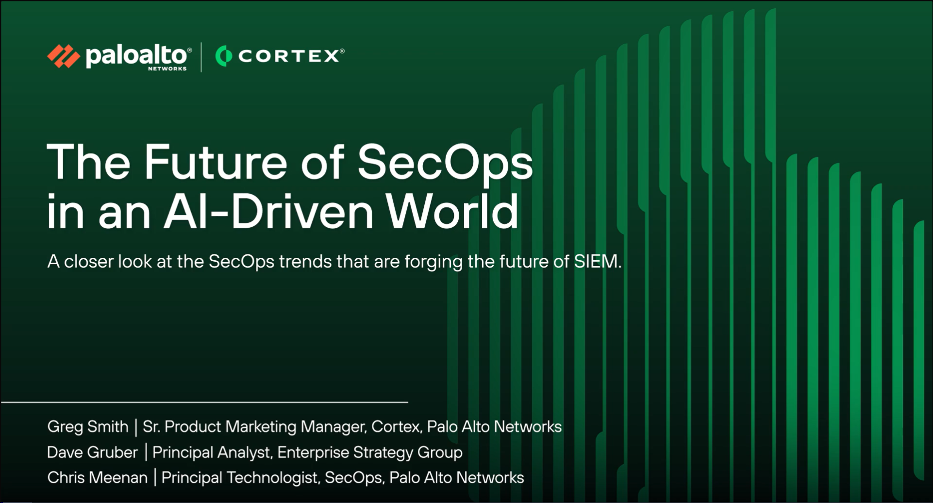 Join research author Dave Gruber, Principal Analyst at ESG, and Chris Meenan, Principal Technologist for Security Operations at Palo Alto Networks, as they unpack these critical findings and provide actionable recommendations for transforming your security operations.