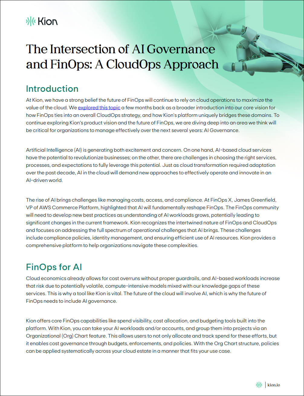 As the cloud landscape evolves, the intersection of FinOps and Artificial Intelligence (AI) is becoming increasingly critical. This is why we believe that maximizing the value of the cloud requires a comprehensive CloudOps strategy that includes robust AI governance. Read this whitepaper for a deep dive into: