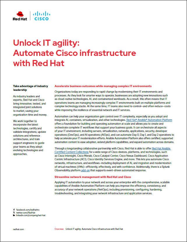 Unlock IT agility: Automate Cisco infrastructure with Red Hat