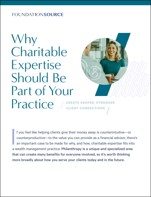 Discover how charitable expertise can enhance client relationships and strengthen your practice. Many high-net-worth clients have philanthropic interests, yet few receive the guidance they need. By aligning charitable strategies with wealth management, advisors can deepen client trust, create lasting impact, and foster client loyalty. Download this white paper to uncover how a charitable planning approach can benefit your clients–and your business.